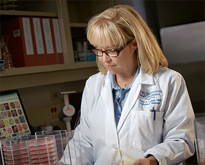 As a long-standing American Society for Microbiology delegate to the United States Pharmacopeial Convention, Dr. Weissfeld is leading the push for mandatory environmental testing of hospital compounding pharmacies. Frequent recalls of sterile products have shed light on this important issue. “Monitoring the pharmacy environment is as important as any patient culture,” she says. “We cannot let this fall by the wayside.”