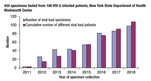 HIV-2 is rare and has its highest prevalence in West Africa. The most recent U.S. data (1987–2009) found that 66 percent of the 166 confirmed cases of HIV-2 in the United States were located in the Northeast, with 46 percent of those cases in New York City. “This is why in New York we are concerned about HIV-2,” said Dr. Styer, who is also an assistant clinical professor, Biomedical Sciences Department, School of Public Health, University at Albany, State University of New York.