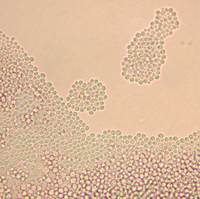 Conjugation between a mother and its bud or between separate cells may produce sexual ascospores. The sexual forms or asci retain the same sizes as the yeast of 3.5 µm to 5 µm. Ascospores are spherical forms that have been described as warty, but the warty appearance is not well distinguishable under light microscopy. One or two ascospores develop per ascus. Ascospore development has been observed on V8, Gorodkowa, McClary’s acetate, and YM agars after 1 to 2 weeks of incubation at 15°C to 20°C.3