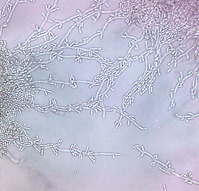 Candida famata has a physiological profile very similar to Candida guilliermondii complex, C intermedia, and Wickerhamomyces anomalus (formerly C pelliculosa).1 As a result, identification of C famata by commercial yeast identification panels and systems may be limited. MALDI-TOF and molecular sequencing are preferable for definitive identification.4 Approximately one-half of C guilliermondii complex isolates produce short pseudohyphae in addition to oval yeast—a feature that would help discriminate the yeast from C famata.