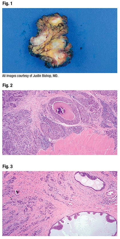Justin Bishop, MD, the Jane B. and Edwin P. Jenevein, MD, distinguished chair in pathology and professor and chief of anatomic pathology, UT Southwestern, along with Saad Khan, MD, assistant professor of medicine (oncology) at Stanford, teamed up to present the case, along with a second case that will be reported in the March issue. (Dr. Khan practiced at one time at UT Southwestern, so this wasn’t their first tumor board together.)