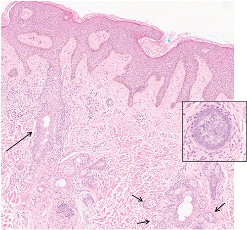 - Sun BK, Saggini A, Sarin KY, et al. Mosaic activating RAS mutations in nevus sebaceus and nevus sebaceus syndrome. J Invest Dermatol. 2013;133(3):824–827.