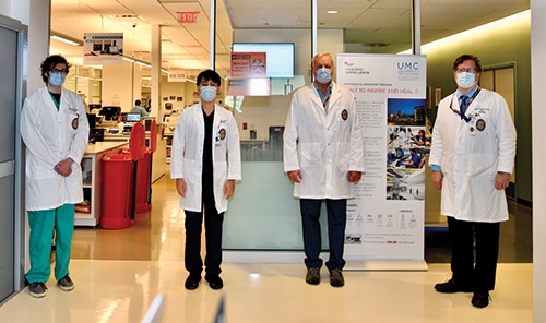 On the other hand, reports from China and Seattle of mysterious heart damage in patients who have died of COVID-19 have not been borne out at University Medical Center. “So far, we have not seen any cardiac deaths,” says Dr. Vander Heide. “The causes of death have all been lung related. However, we’re in the process of doing microscopic analysis and have found cardiac findings that while not a cause of death, we believe are specific to COVID-19 virus infection.” He calls “interesting and surprising” the findings they have submitted to a cardiology journal. “Some of the autopsied COVID-19 patients had some kidney disease during their clinical course and we are finding glomerular lesions that we also believe were produced by SARS-CoV-2,” he says.