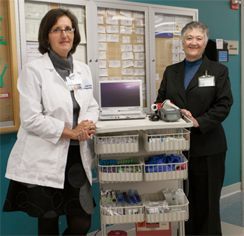 At Sarasota, the laboratory decided to conduct a positive improvement study, says Dana J. Rickard, MT(ASCP), preanalytical manager. In the summer of 2009, with the help of Charlotte Damato, a Six Sigma/Lean Quality coach and expert in work and role redesign, “we did a value stream analysis of turnaround time in the lab in connection with the ECC.” In addition, Harris says, “we did some Lean studies of physical workflow in the ECC and the lab to see structurally where improvements could be made. So we used Lean and everything that goes along with that methodology.”