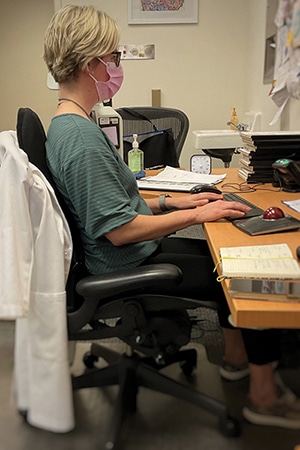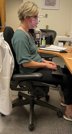 For any employer, ergonomic setups and practices pay off, Pentico says, because healthier, more comfortable workers are known to be more productive workers. Dr. Bean, who is chair of the Department of Pathology’s well-being committee, agrees. Being comfortable physically in the workspace, she says, makes it possible to focus and to be efficient. “To do so without traumatizing your body and accumulating pain is exquisitely important,” she says, “and that is the intersection of ergonomics and well-being.”