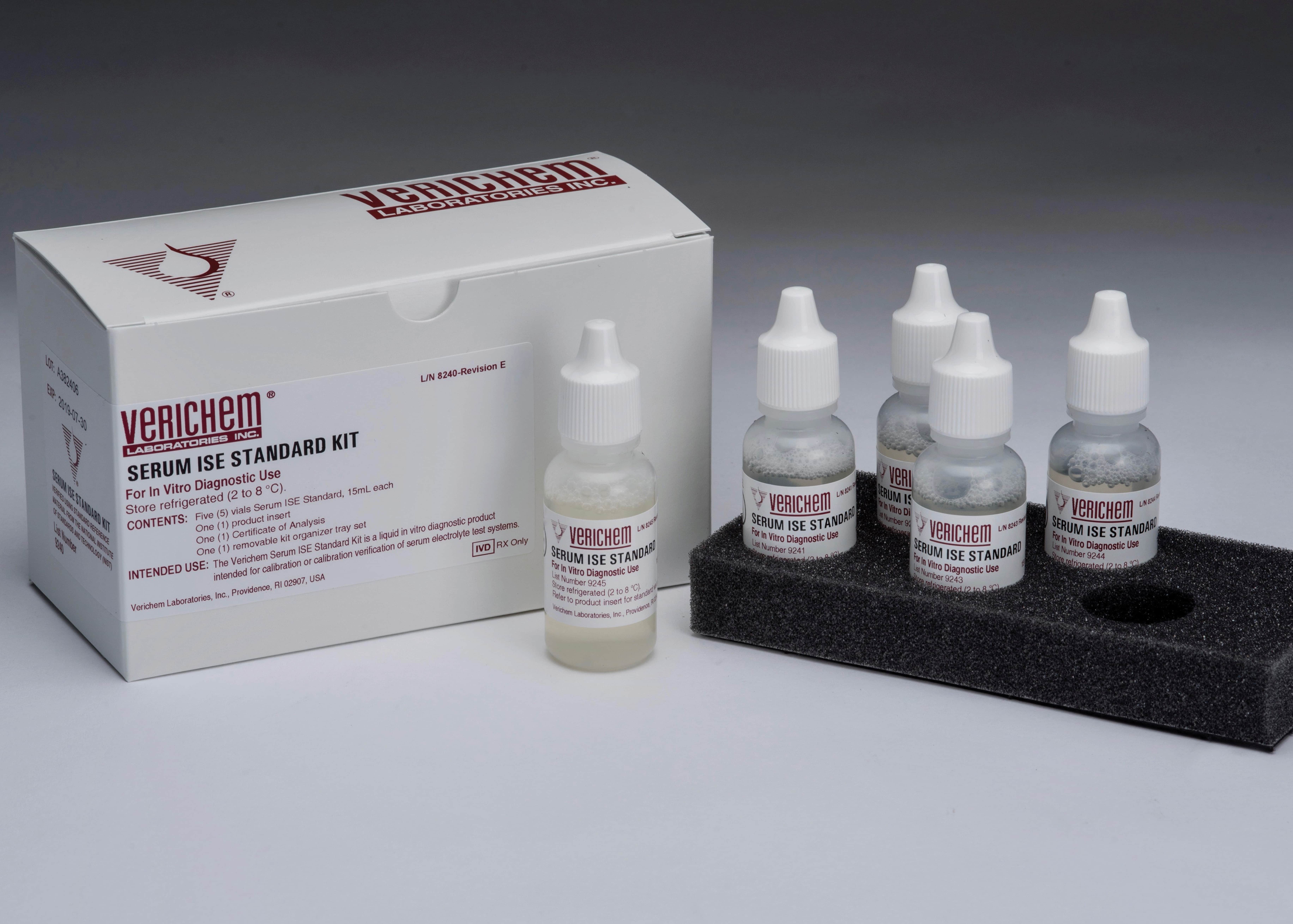 April 2022—Verichem Laboratories offers two multilevel, protein-based test kits of clinical reference materials for the calibration or calibration verification of lithium assays. Intended for use with direct and indirect ion-selective electrodes, colorimetric assays, and flame photometers, the Electrolyte Standard Kit and Serum ISE Standard Kit contain NIST-verified gravimetric concentrations for lithium. The liquid-stable, ready-to-use materials can also be used for quality control monitoring, method evaluations, post-maintenance testing, and routine troubleshooting.